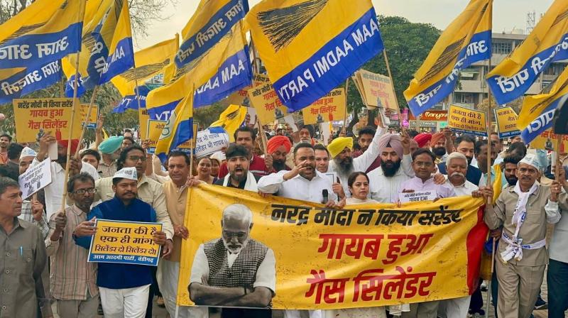 Chandigarh, 16 March 2026: The BJP government, which boasts of a "Double Engine," has now become a "Trouble Engine" for the common man. Against the skyrocketing prices of LPG and the 'Artificial Shortage' of gas cylinders deliberately created in the city, the Aam Aadmi Party (AAP) Chandigarh today launched a massive protest against the Central Government at the Sector-17 Plaza (opposite Neelam Cinema).