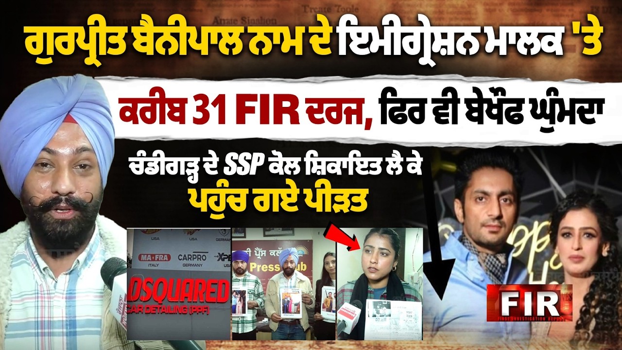 Serious allegations have surfaced against immigration firm owner Gurpreet Bainipal, with nearly 31 FIRs registered against him. Despite multiple criminal cases, the accused is reportedly moving freely and continuing his business operations.