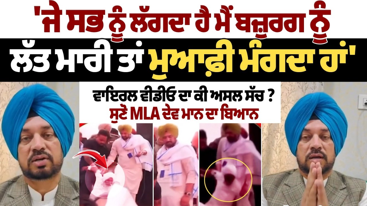 viral video has raised questions about MLA Dev Maan allegedly kicking an elderly person. The MLA has now come forward to clarify the situation and issue a statement. Watch the full video to understand the truth behind the viral clip and hear MLA Dev Mann’s explanation. Stay tuned for more updates on trending news in Punjab politics.